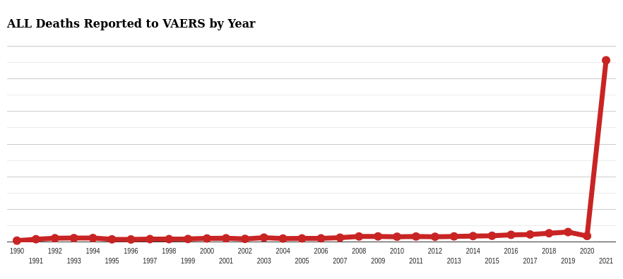 Volgens de gegevens van VAERS van 13 juni 2021 is het aantal gerapporteerde sterfgevallen door COVID vaccins groter dan het gecombineerde aantal gerapporteerde sterfgevallen door andere vaccins in de afgelopen 30 jaar.