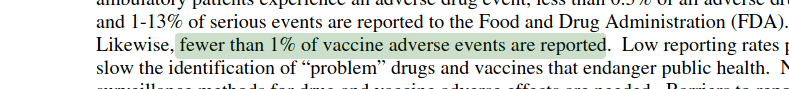 Deze VAERS cijfers vormen het topje van de ijsberg. Volgens het Lazarus Report, een studie van Harvard, wordt minder dan 1% van de bijwerkingen van vaccins gemeld.