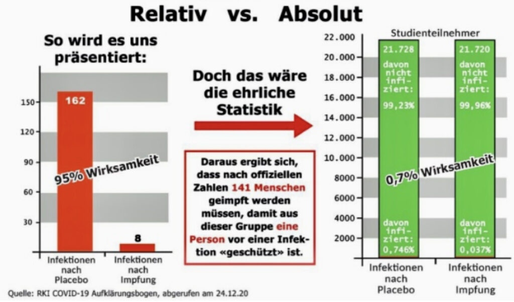 “Relatieve risico’s kunnen […] de perceptie van het verschil overdrijven en dit is vooral het geval wanneer de absolute risico’s zeer klein zijn.“