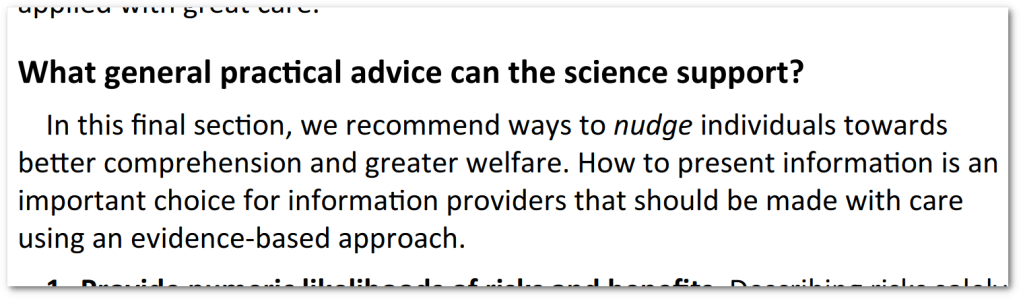 “Hoe informatie te presenteren is een belangrijke keuze voor informatieverstrekkers die zorgvuldig moet worden gemaakt met behulp van een op bewijs gebaseerde aanpak.”