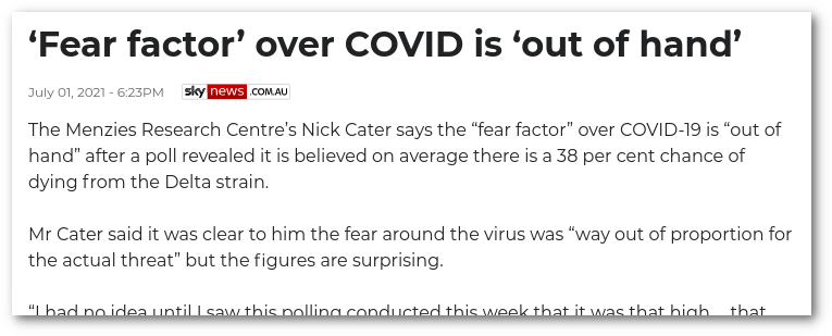 In juni 2021 schatten Australiërs hun kans op sterven in het geval van een infectie met het virus op 38%, een overschatting van meer dan 160 keer.