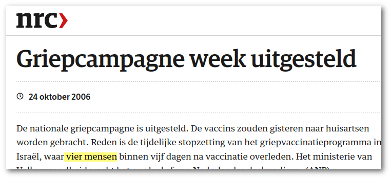 In 2006 werd de nationale griepvaccinatiecampagne een week stilgelegd na het overlijden van 4 mensen.