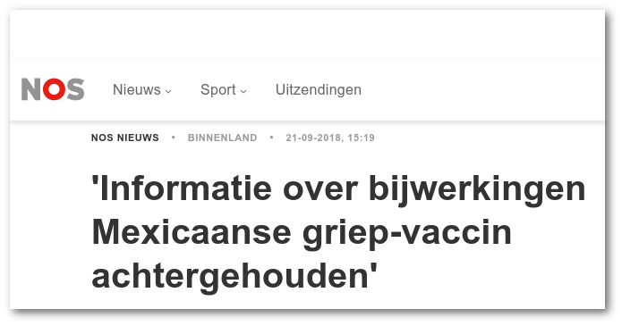 NOS in 2018: informatie over “groot aantal ernstige bijwerkingen” vaccin achtergehouden door fabrikant en autoriteiten